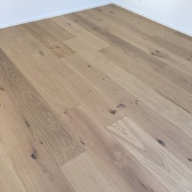 Extra brett och långt borstat plankgolv på 260mm i bredden och 2200mm i längden. De extra stora plankorna ger ett verkligt exklusivt golv. Golvet har vackra kvistar och spel i trägolvet.
